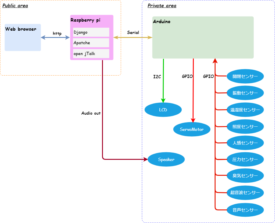 - 遠隔でトイレ施設(以下、個室という)の利用状況を確認し、利用中断を促す各施策を施すためのシステムです。