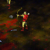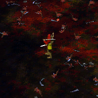 | とにかく射程が長い。基本的な役割は敵のRangedユニットとWightを近づく前に狩っていくこと。ゴールデンアローを拾うと以下のスペシャルが使えるようになる。Beholderや芸者さんを麻痺させたり、Slayでライフを削ったり...。とにかく他の味方Ranged、Meleeをサポートしまくろう。なおスペシャルは3個まで持つことができ、インベントリーで交換して使える。127killでmaxvet。これを持った人は周りをしっかりケアし、敵artyを確実に仕留めることが必要です。 | GOLD BOW |