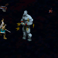 | おなじみの北方の戦士。full mana時にスペシャルで強烈な一撃を放つ。manaは攻撃する事によってのみ回復。itemを何でも拾えて、持ち運ぶ事ができる(T keyで地面におく)。hero化するとitemを持てなくなる。 | ORANGE CRYSTAL、PURPLE CRYSTAL |